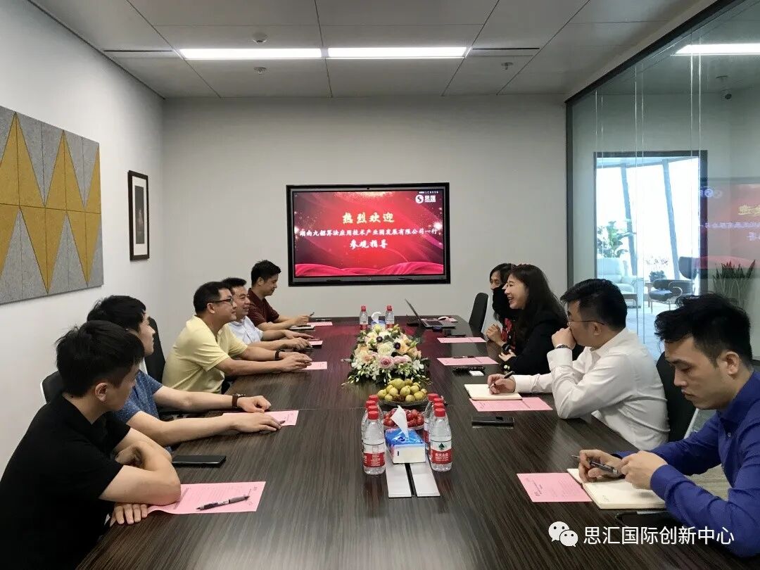 2020年8月28日,湖南九韶算法应用技术产业园发展有限公司总经理黄晖、副总经理黄湘浙、执行董事李金龙、湖南应超智能计算研究院有限公司院长张炼、深圳市查策网络信息技术有限公司合伙人宋鹏、前海科创中心谭艺平一行莅临参观考察思汇中国,由思汇中国董事长葛芬、副总经理邱虹、副总经理于鲁阳等陪同本次接待与座谈。 葛芬董事长首先对考察团的到来表示热烈欢迎,并陪同黄晖总经理一行对思汇中国进行了参观,随后双方进行交流会谈。 座谈会上,湖南九韶算法应用技术产业园发展有限公司总经理黄晖详细介绍了公司产业定位、主要业务、未来规划等内容,并在听取了葛芬董事长就思汇中国发展历程以及在大数据、人工智能、生物科技等高科技领域的相关项目及产业布局,就双方优势资源、产业对接、项目合作等进行了深入探讨与交流。 葛芬董事长表示,科技创新需要生态思维,建设创新土壤,形成裂变功能是科技创新落地的重要路径。在国际国内双平台运作的过程中,通过多维度地整合本地的人才与科技优势,链接海内外创新资源,形成适应本土发展的生态,是未来国际科技创新产业发展的核心。 双方交流座谈 通过实地考察与座谈,黄晖总一行希望进一步与思汇中国增进了解,持续加强对接,实现优势互补,共同推进项目合作。前海科创中心谭艺平对思汇中国创始团队的高效工作表示由衷的赞赏,并指出思汇中国的链接国际理念与前海科创产业发展思路高度契合。 葛芬董事长对前海科创中心谭艺平、黄晖总经理一行到访思汇中国表示感谢与荣幸。她表示,深圳的发展离不开创新这一强大基因,湖南和深圳的发展有差异,更有互补,未来湘深两地合作空间广大。 合影留念